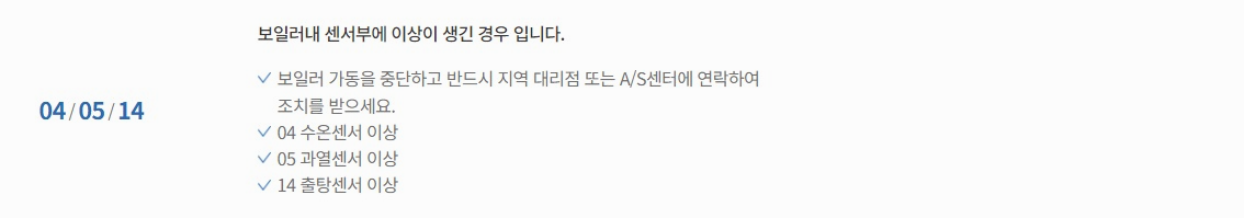 04 수온센서 이상 05 과열센서 이상 14 출탕센서 이상