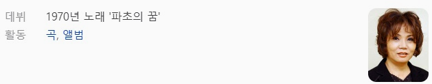 요즘에도 전국노래자랑을 통해 연예계에 발을 들이는 신인들을 볼수가 있는데 예전에도 그런 루트가 많았나봅니다 1970년도에 본격적으로 앨범 파초의 꿈을 발매하면서 데뷔를 했으며 혜성처럼 등장한 신인에게 뜨거운 관심이 쏠렸고 파초의 꿈 노래도 인기를 얻으며 평탄하고 행복한 활동을 합니다