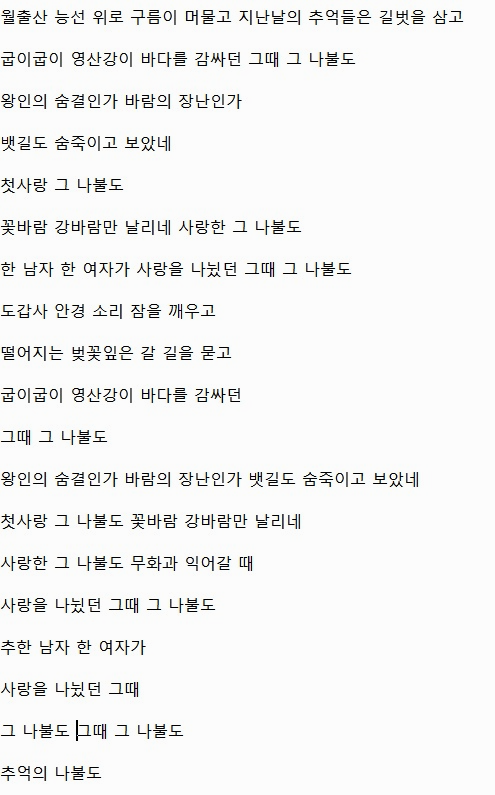 < 나불도 연가 가사 >