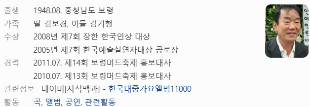 고향 : 충청남도 보령군