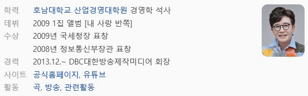 가수 이부영은 2009년에 내 사랑의 반쪽 노래로 가요계에 데뷔를 했고 당시 나이 47세로 가수를 시작하기엔 다소 늦은 나이였지만 누구보다 열심히 활동을 했습니다 노력 끝에 그가 대중들에게 인지도를 쌓았던건
