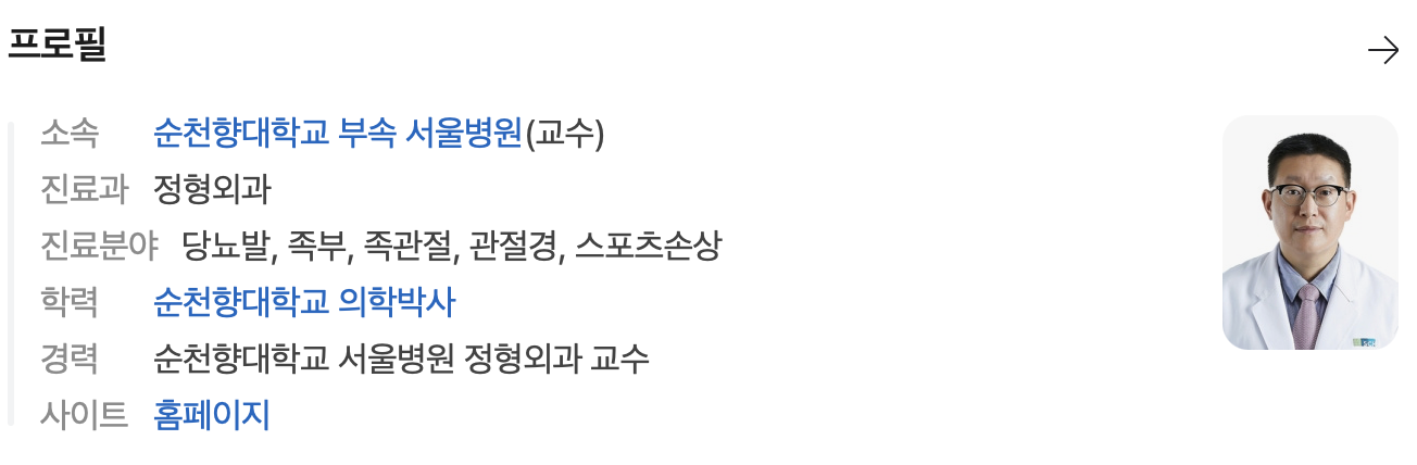 진료분야 : 당뇨발, 족부, 족관절, 관절경 등