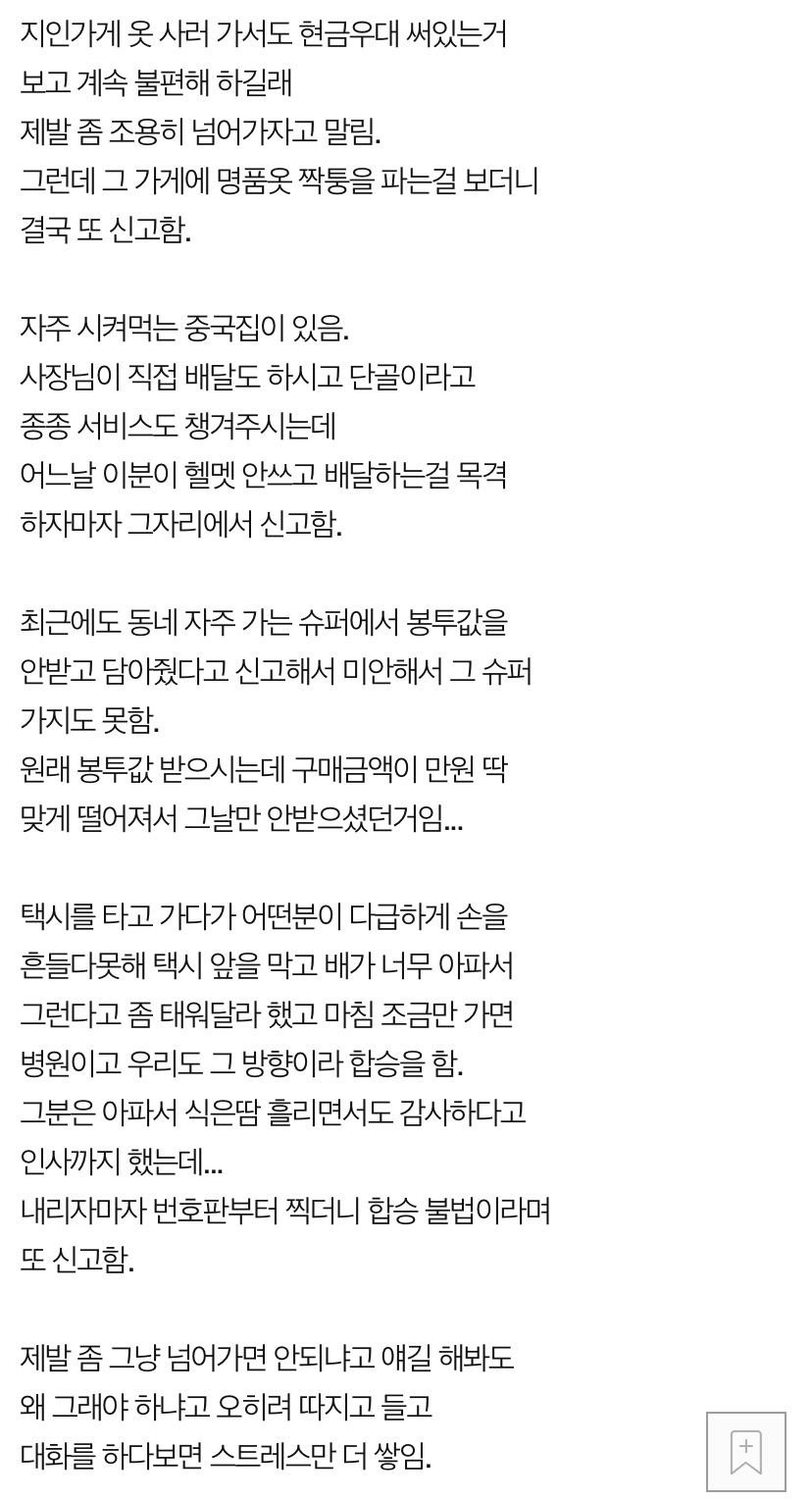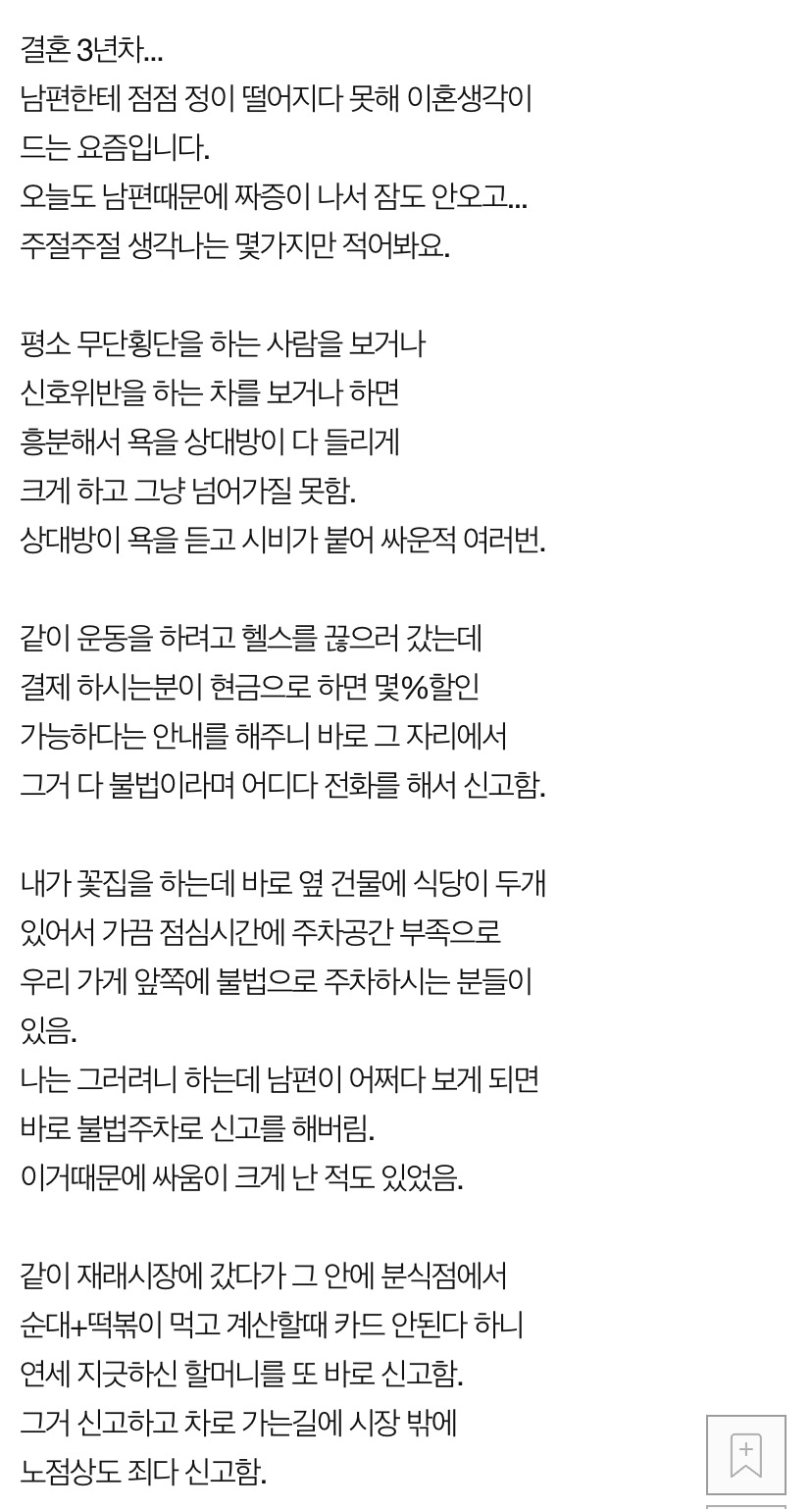 네이트판 레전드 사연으로 신고정신 투철한 남편으로 인해 같이 살기 힘들다는 사연이 올라왔습니다 저 또한 불의를 보면 참지 못해서 뭐 얼마나 신고를 잘하길래 그래 작은 행동으로 사회가 변화된다면 좋은거 아닌가? 생각으로 사연을 읽어내려갔지만 사실 심하긴 하다 이 생각
