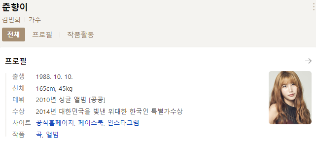 가수 춘향이는 누구 본명 김민희 나이 프로필
