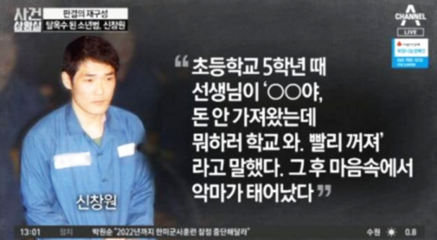 현재 신창원의 나이는 이제 54세가 되었습니다 교도소에서 모범적인 생활을 하고 있으며 중고등 검정고시에도 붙을 정도로 머리는 좋았던거 같아요 비록 가난했어도 어릴적 올바르게 케어 받고 학창시절 선생의 따스한 말한마디로 지도를 했더라면 그의 인생은 바뀔수 있지 않았을까 싶습니다