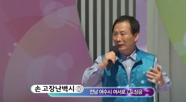 다들 한번쯤 보셔서 아하! 기억이 떠오를거라 예상해봅니다 1998년도부터 송해 선생님이 진행을 해왔는데 무려 1000만명에 달하는 출연진들을 만나왔다 합니다 감이 안온다면 경기도 인구를 모두 만났다고 보시면 되겠습니다 첫번째는 2015년도 10월 전남 여수시편에 출연했던 손고장난벽시 출연자 입니다 이름이 넘 특이한데 진짜 이름이냐 물으니 자신의 주민등록증까지 보여줬었는데 나훈아의 고장난 벽시계 노래를 너무