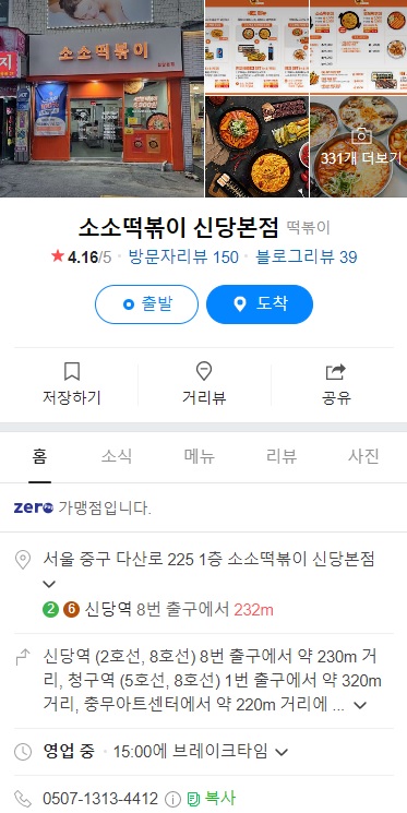 소소떡볶이 신당본점 찾아가는 길과 위치는 2호선 6호선 신당역 8번출구에서 나와 걸어가면 나온다고 해요 15시에 브레이크 타임 있습니다
