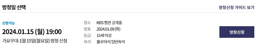 안내사항을 모두 숙지하셨으면 드디어 방청일을 확인후 신청 가능한데요 녹화날짜 잘 확인하시길 바랍니다 가요무대 녹화시간은 현장 리허설 상황에 따라 달라지고 좀더 지연될수 있습니다